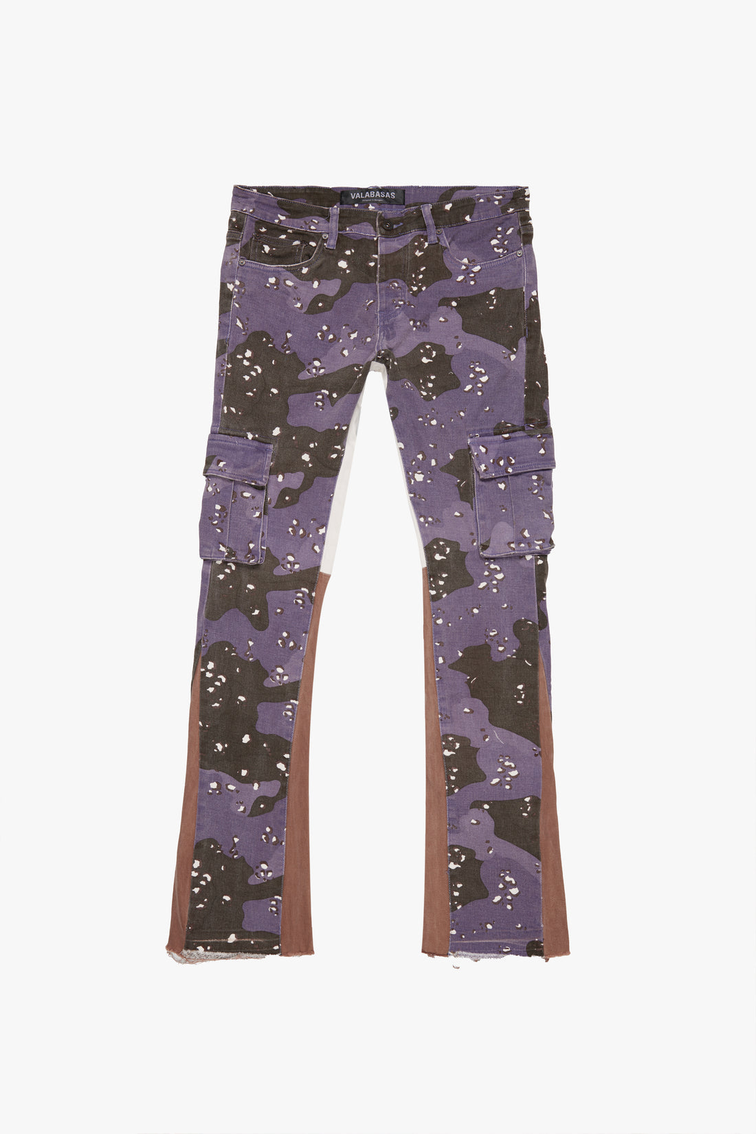 COMMANDER" PURPLE BROWN CAMO STACKED FLARE JEAN