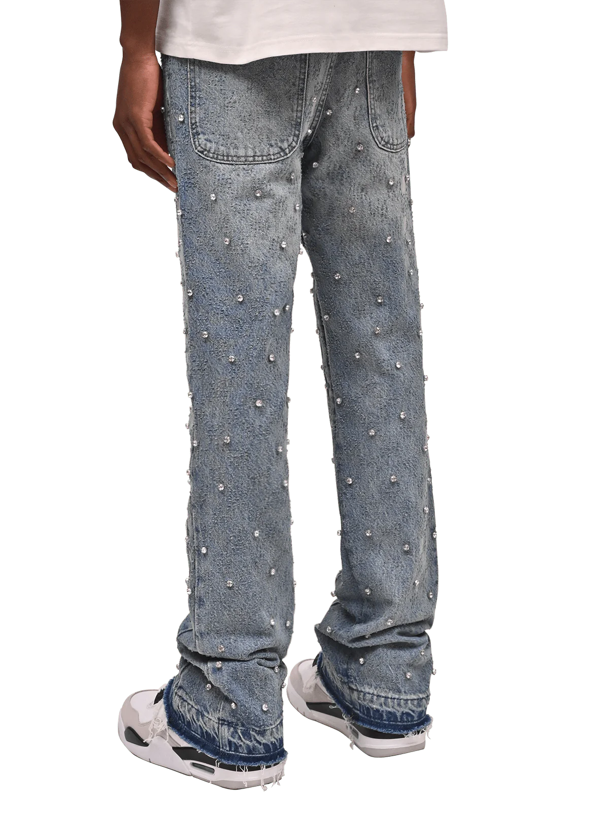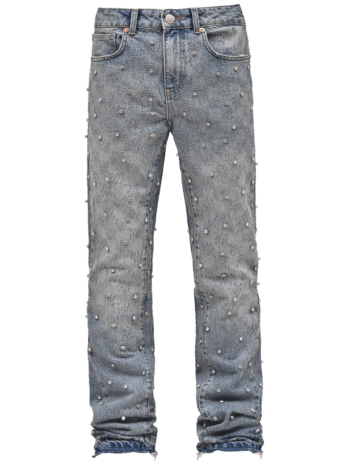 RHINESTONE FLARE DENIM - LIGHT STONE